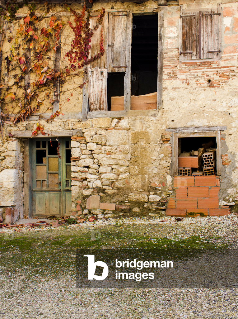 BBF11983723 Facade of an abandoned house in a village in the Gers region (France).