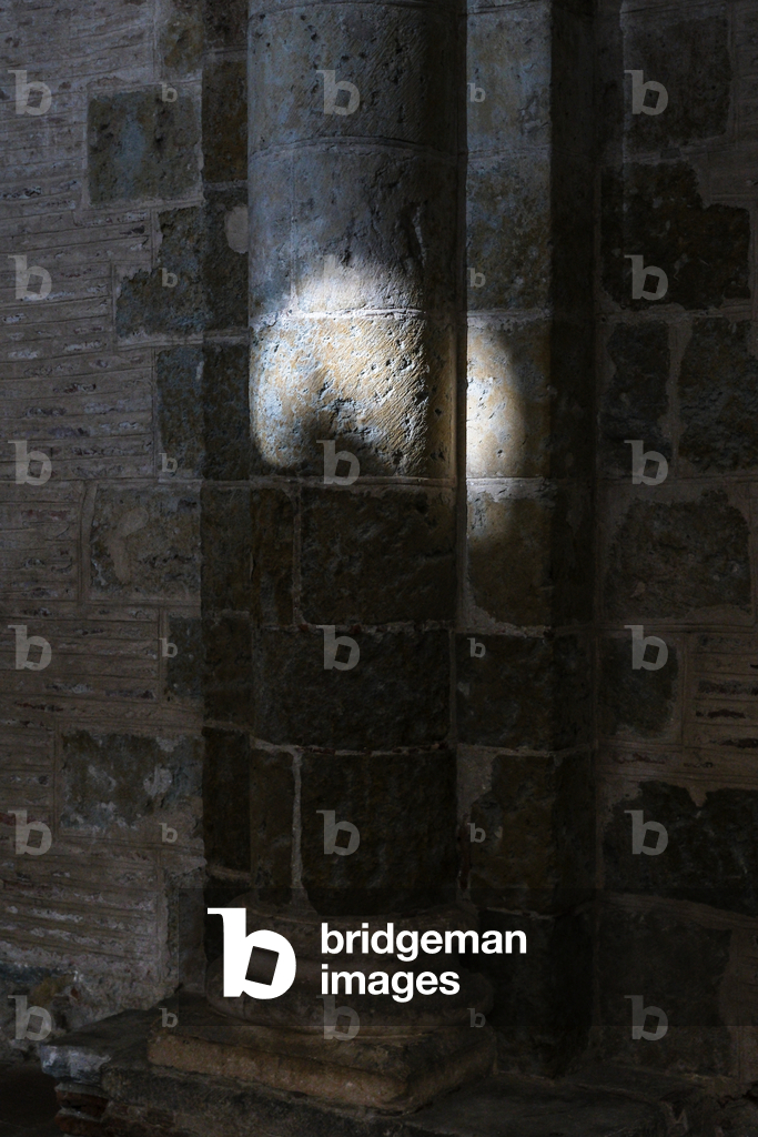 BBF11983745 Toulouse (Haute-Garonne), Basilique Saint-Sernin (place of pilgrimage to the tomb of Saint Saturnin; begun in 1080; completed in the 13th century; restored 1862-1879 under Viollet-le-Duc).Interior view: pillar with a spot of light.