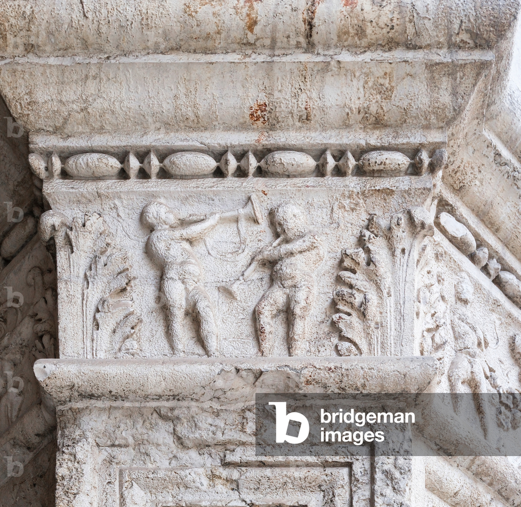BBF11992106 Venice (Italy), Doge's Palace / Palazzo Ducale (built from 1340), carved relief, courtyard pillar.