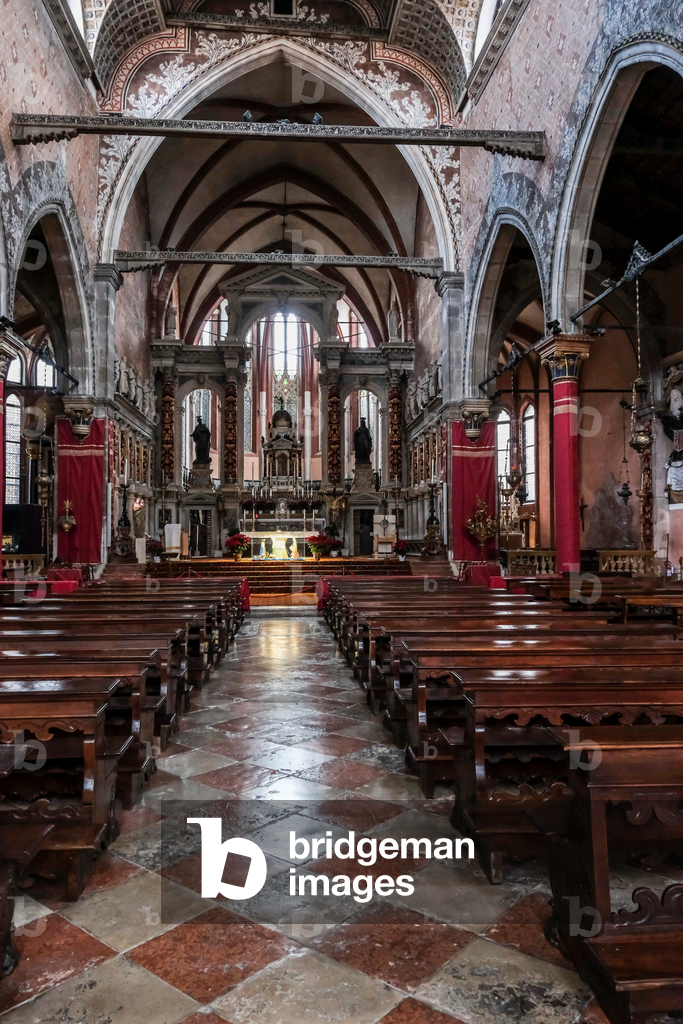 BBF11992078 Venice (Italy), Church of San Stafano (sestiere San Marco), 13th-14th century. Interior view, nave to choir.