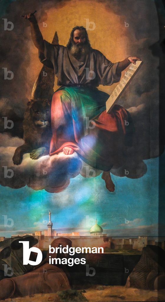 BBG11983672 Basilique Notre-Dame de la Daurade, built 1764-1883 on the probable site of the chapel of the Visigoth kings.Transept painting: Saint Mark and the Lion, Cairo, 1831-1834.Painting on canvas by Constantin Prevost (1796-1865).