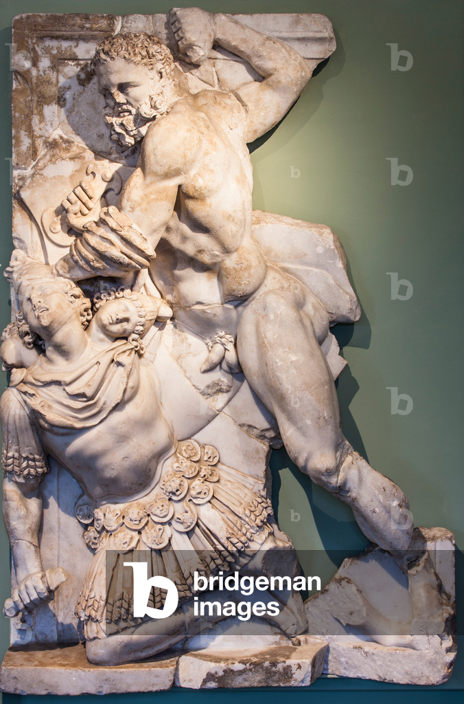 BBG11983559 Hercules battles the giant Geryon, late 3rd century.Tenth of the twelve labors of Hercules.Toulouse (Haute-Garonne), Musée Saint-Raymond, from the Villa de Chiragan.
