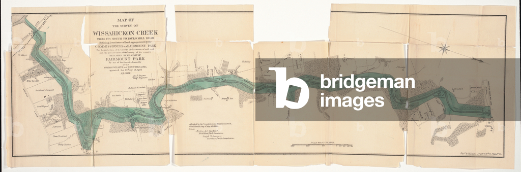 FLP11992165 Map of the Survey of Wissahickon Creek from its Mouth to Paul's Mill Road Defining Boundaries of Land Appropriated by the Commissioners of Fairmount Park, ca. 1869, Map by Linton, S. B. (S. Benton) (engraver) Cresson, John C. (John Chapman), 1806-1876 (engineer)