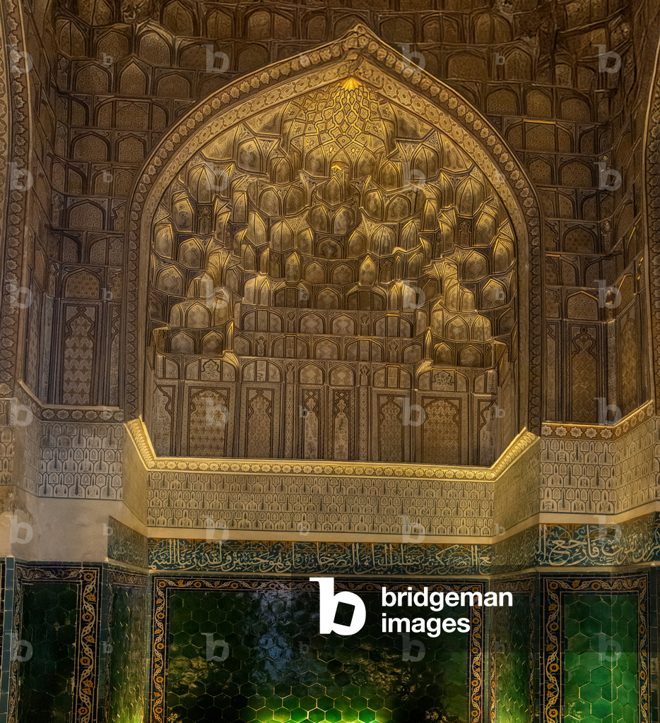 SCN11988959 Interior decoration, Tuman Oko Complex (bult by Amir Tumur’s wife, 15th C), Shah-i-Zinda (a necropolis of mausoleums and other ritual buildings of 9-14th and 19th centuries), Samarkand, Uzbekistan
