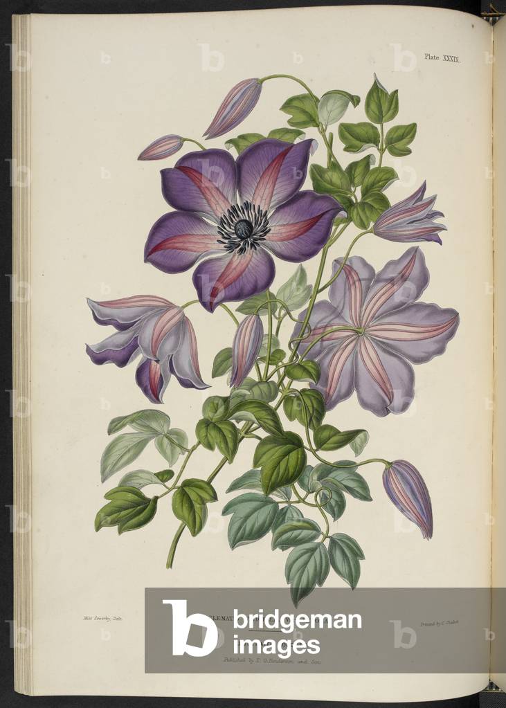 LLM457229 Purple Clematis. Illustration for Familiar Garden Flowers (Cassell, c 1890).