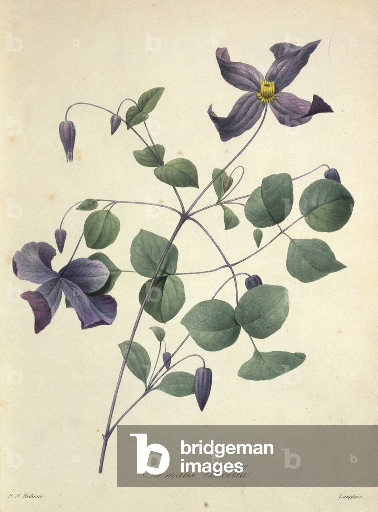 NHM1454203 Clematis viticella, Polish spirit, Painting by Pierre Joseph Redout‚ (1759-1840), from his publication Choix des plus belles fleurs (The Most Beautiful Flowers), c. 1827-33. - BotanicalLondon UK