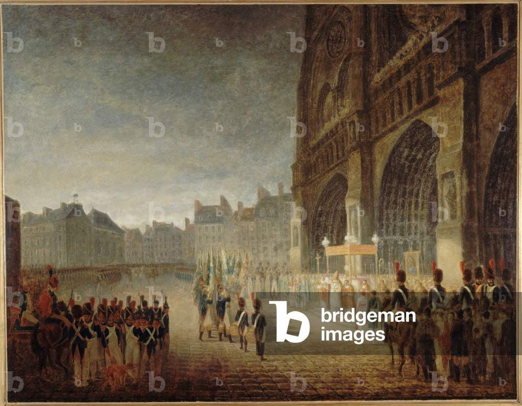 JLJ4572986 The Benediction of the Flags on the Square of the Cathedrale Notre Dame de Paris in 1804 Painting attributed to Antoine Jean Gros (1771-1835) 19th century Sun. 1,1x1,46 m Paris, Musee Carnavalet