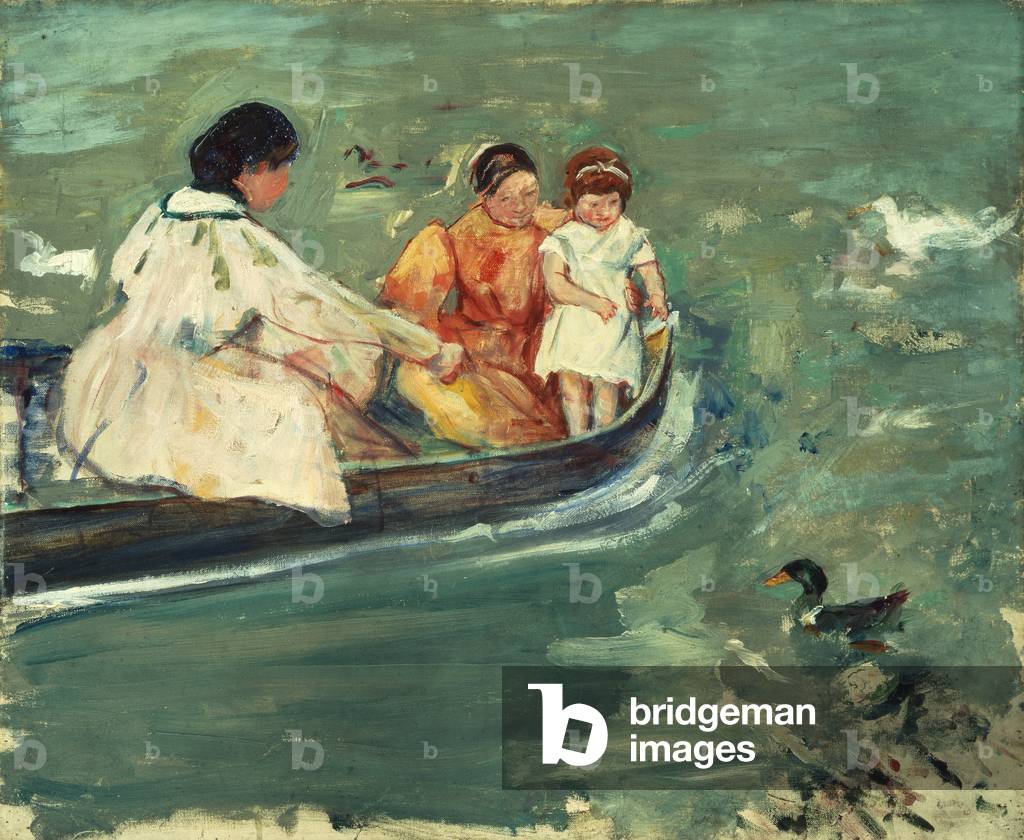 UIG5388152 mother and daughter in a row boat watching the ducks.By Mary Cassatt