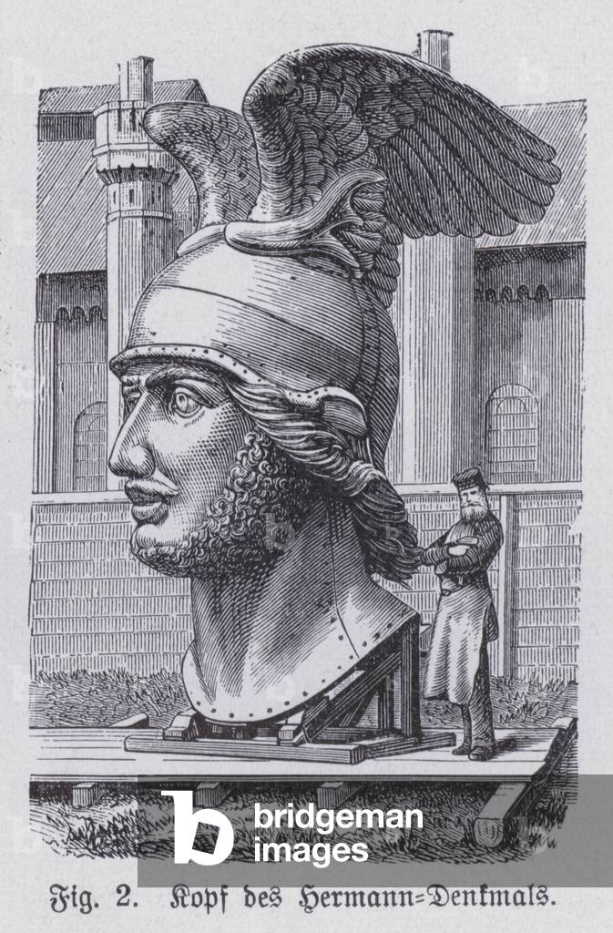 LLM6000721 Head of the Hermannsdenkmal, monument to the Germanic warrior and chief Arminius, who defeated the Romans at the Battle of the Teutoburg Forest in 9 AD, Detmold, Germany. Illustration from Universum des Himmels, der Erde und des Menschen (F E Bilz, Dresden-Radebeul and Leipzig, c1925).