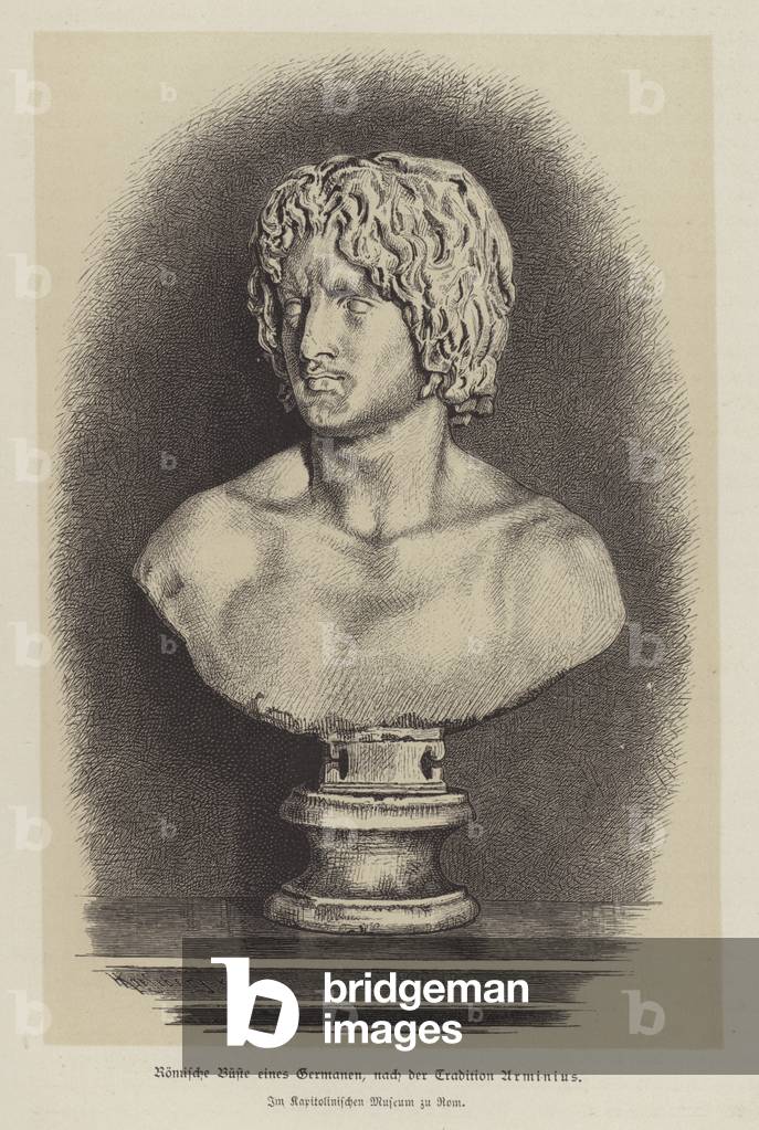 LLM3100851 Roman bust of a Germanic man. Said to be a portrait of Arminius, the chieftain who defeated a Roman army at the Battle of the Teutoberg Forest in 9 AD. Illustration for Deutsche Geschichte by L Stacke (Velhagen & Klasing, 1882).