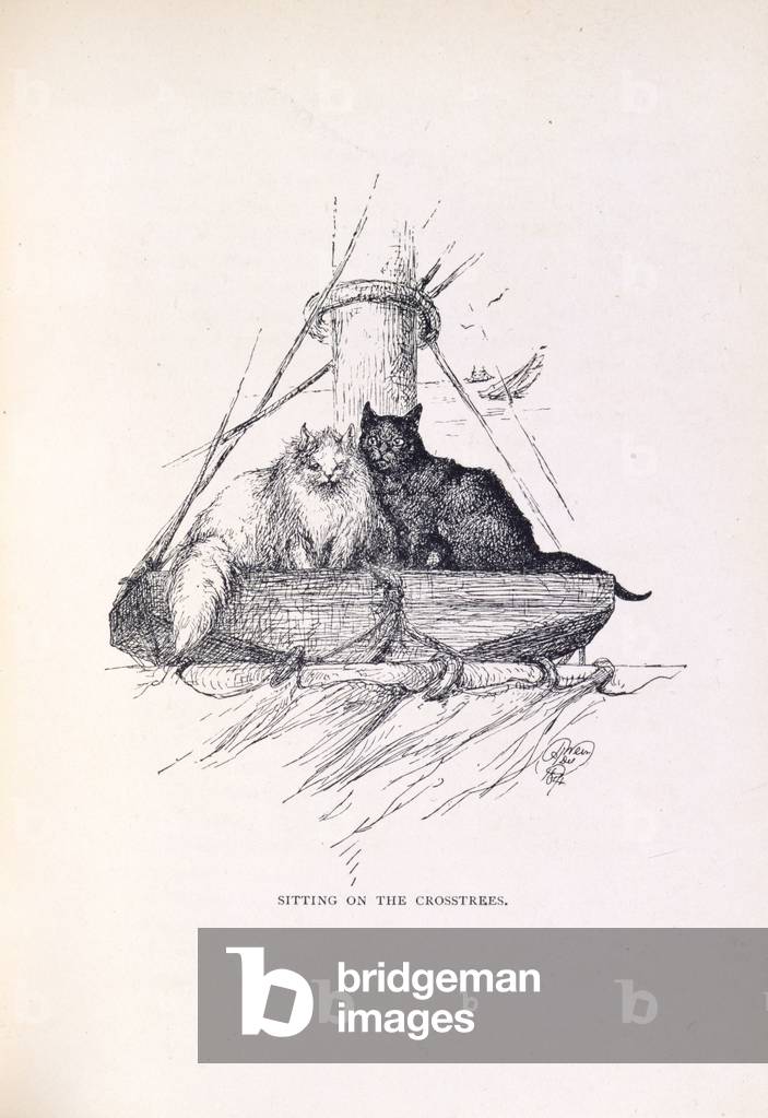 BL3265918 Shireen and Her Friends. Pages from the life of aAuthor: Stables, William Gordon / Jarrold & Sons: London, 1895Language: EnglishSource/Shelfmark: 012807.ff.62,Sitting on the crosstrees'. Two ship's cats sitting on top of a mast.Image taken from Shireen and Her Friends. Pages from the life of a Persian cat, etc.Originally published/produced in Jarrold & Sons: London, 1895.