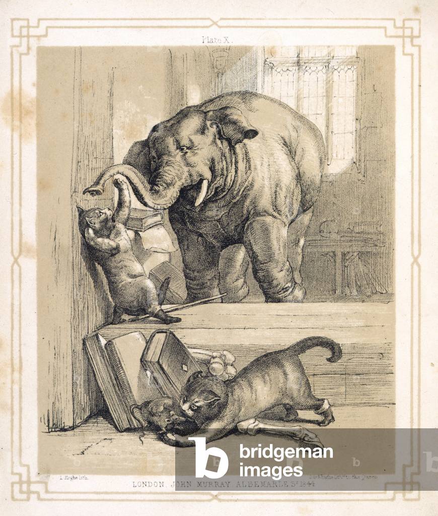 BL3265960 Puss in Boots and the Marquis of Carabas. IllustraIllustrator: Speckter, OttoJohn Murray: London, 1847Language: EnglishSource/Shelfmark: 12809.f.57, plate XA cat playing with an elephant. Another cat, with a mouse.Image taken from Puss in Boots and the Marquis of Carabas. Illustrated by Otto Speckter, etc.Originally published/produced in John Murray: London, 1847.