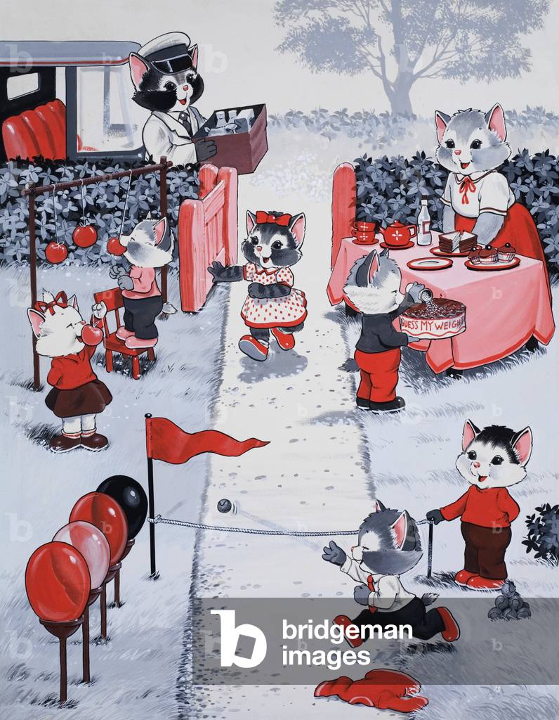 LAL302068 Cats at fete. Original artwork for Jack and Jill Playhour Extra 1969. Lent for scanning by the Illustration Art Gallery.