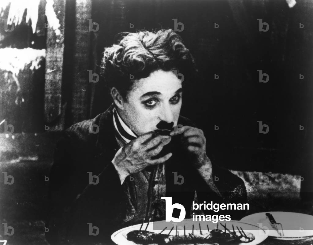 UIG1574077 Charlie Chaplin, KBE (1889-1977). The Tramp resorts to eating his boot in a famous scene from The Gold Rush (1925).