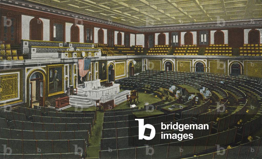 LLM7200059 Hall of Representatives. Illustration for Celebrated Paintings and Interior Views of the US Capitol (B R Reynolds Co, c 1922).