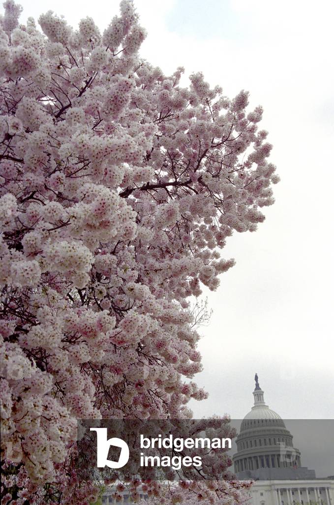 SAO3861137 Cherry blossoms in front of the dome of the US Capitol Building in Washington, DC. US.