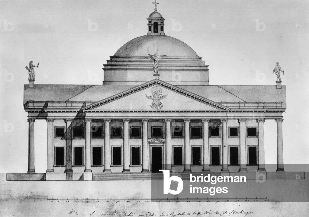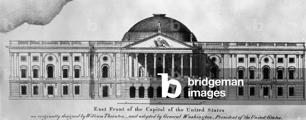 UIG557526 Design for the U.S. Capitol by William Thornton. Dr. William Thornton, an amateur, won the 1792 competition to design the Capitol building. His design reflects the Greek revival style favored by American architects of the period.