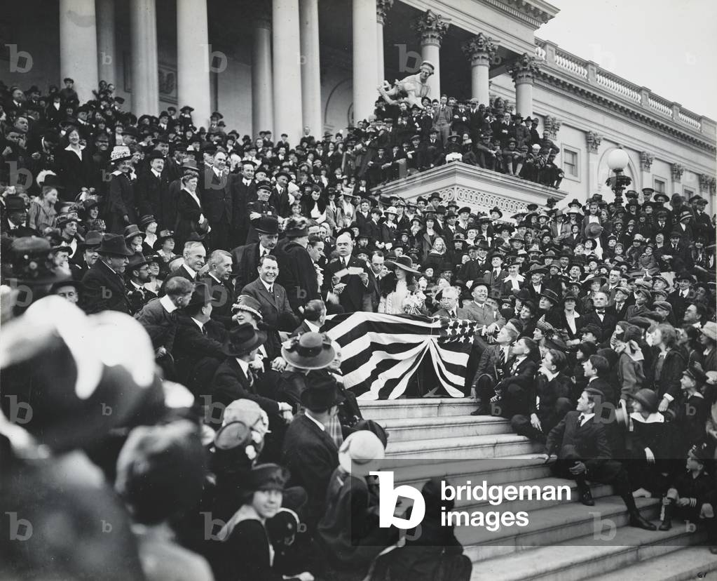 XOS7215346 Mary Pickford, Charlie Chaplin, and other movie stars selling Liberty Bonds on the steps of the Capitol Building in Washington D.C