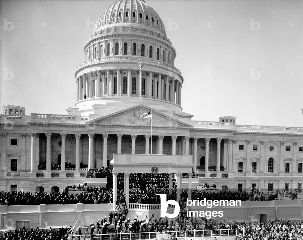 ZUM4852098 Jan 20, 1961; Washington, DC, USA; John F. Kennedy (1917-1963) is sworn in as President of the United States at the inaugural ceremony in front of the Capitol Building