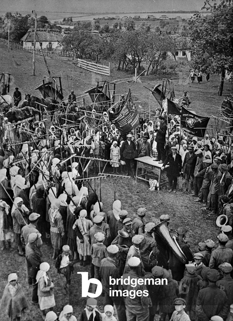 UIG1575117 General meeting to discuss harvesting on a collective farm. Kiev, Ukraine, USSR (Union of Soviet Socialist Republics).