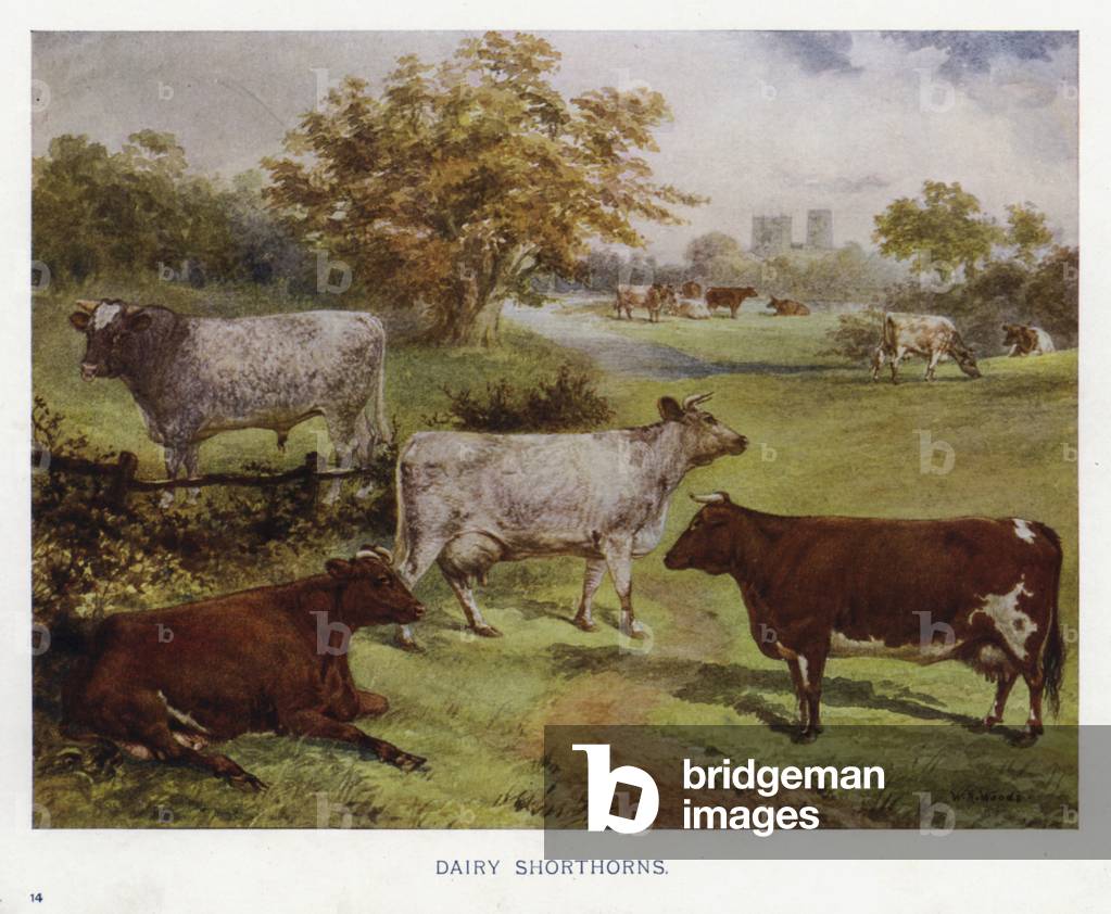 LLM6021371 Dairy Shorthorns. Illustration for Livestock In Health and Disease by A H Archer edited by J Prince-Sheldon (Cassell, c 1902).