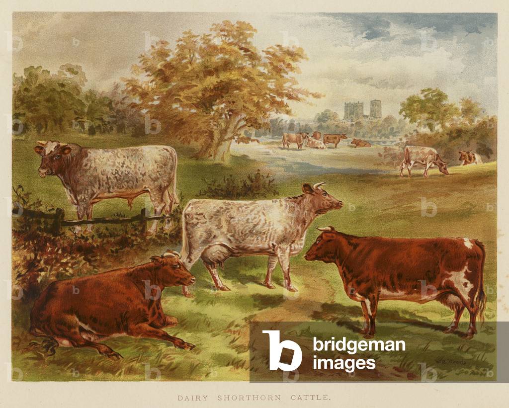 LLM8631835 Dairy Shorthorn Cattle. Illustration for Dairy Farming by J P Sheldon (Cassell, c 1885).