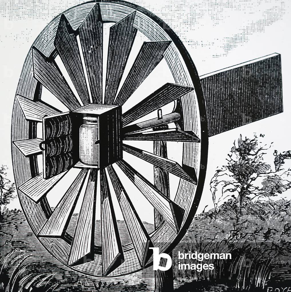 UIG3732833 Engraving depicting a butter churn powered by wind. Dated 19th Century.