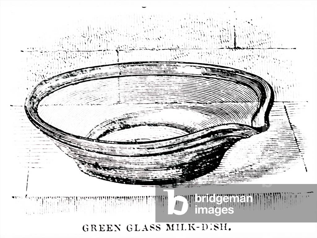 UIG3732524 Engraving depicting a green glass milk-dish in which the cream was allowed to rise. Dated 19th Century.