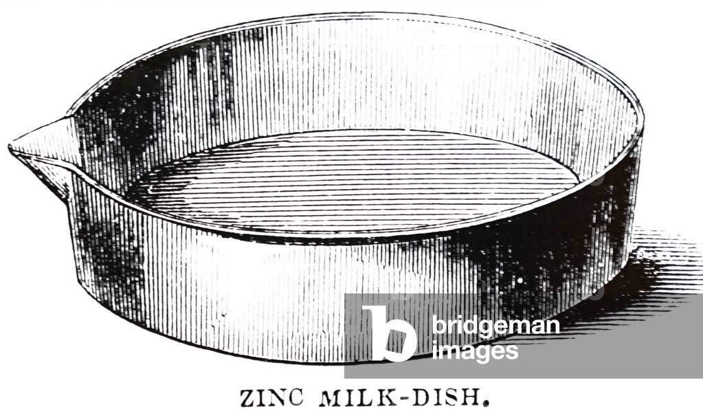 UIG3732525 Engraving depicting a zinc milk dish in which the cream was allowed to rise. Dated 19th Century.
