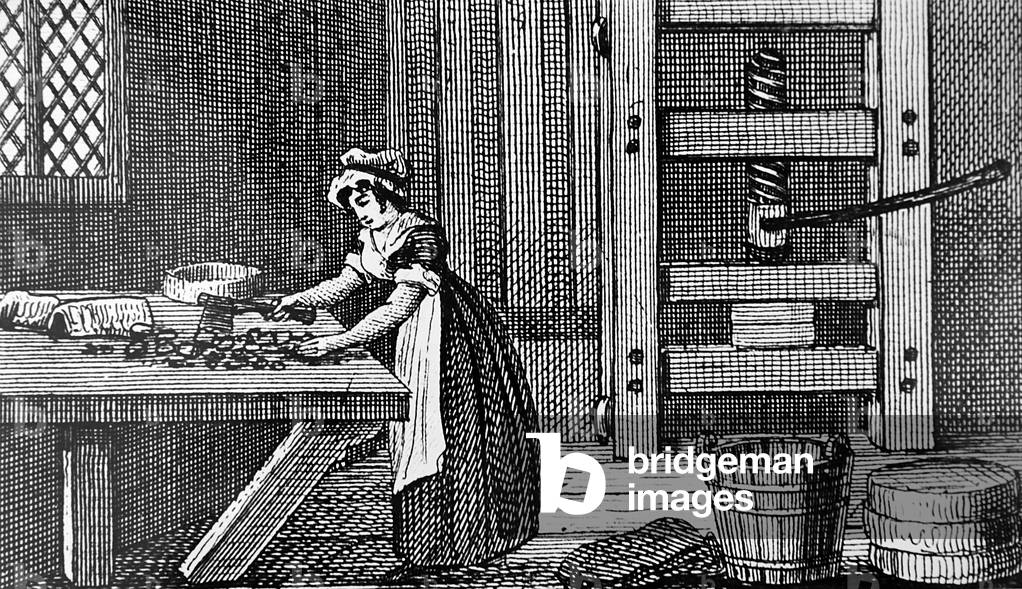 UIG3732606 Engraving depicting a cheese press. Dated 18th Century.