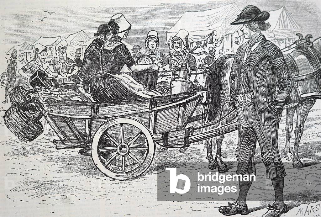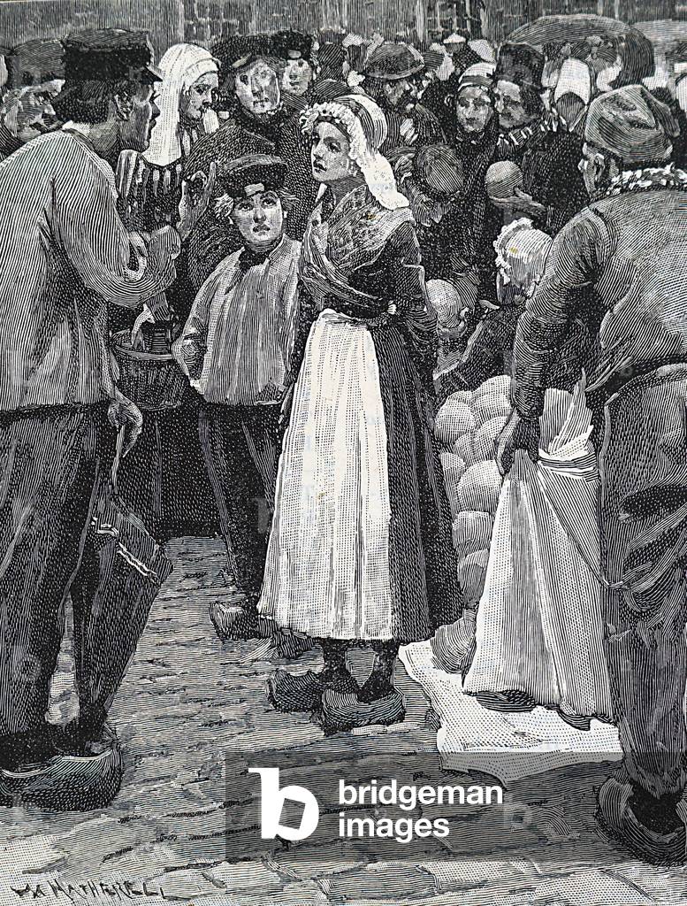 UIG3732836 Engraving depicting a cheese market in Harwick, Britain. Dated 19th Century.