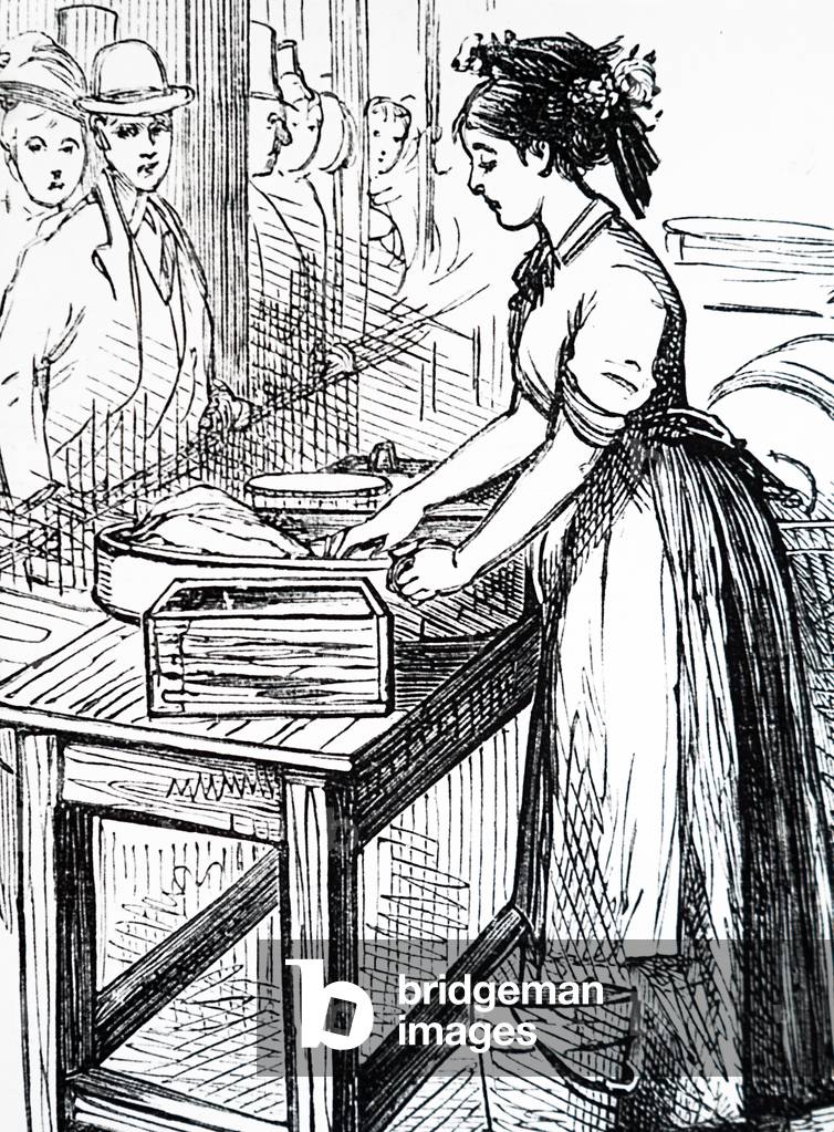 UIG3732837 Engraving depicting a cheese market in Harwick, Britain. Dated 19th Century.