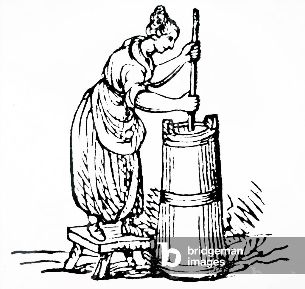 UIG3732831 Engraving depicting a butter maid making butter. Dated 19th Century.