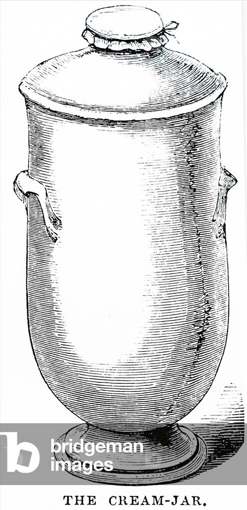 UIG3732519 Engraving depicting a stoneware cream jar in which the cream was stored before churning. Dated 19th Century.