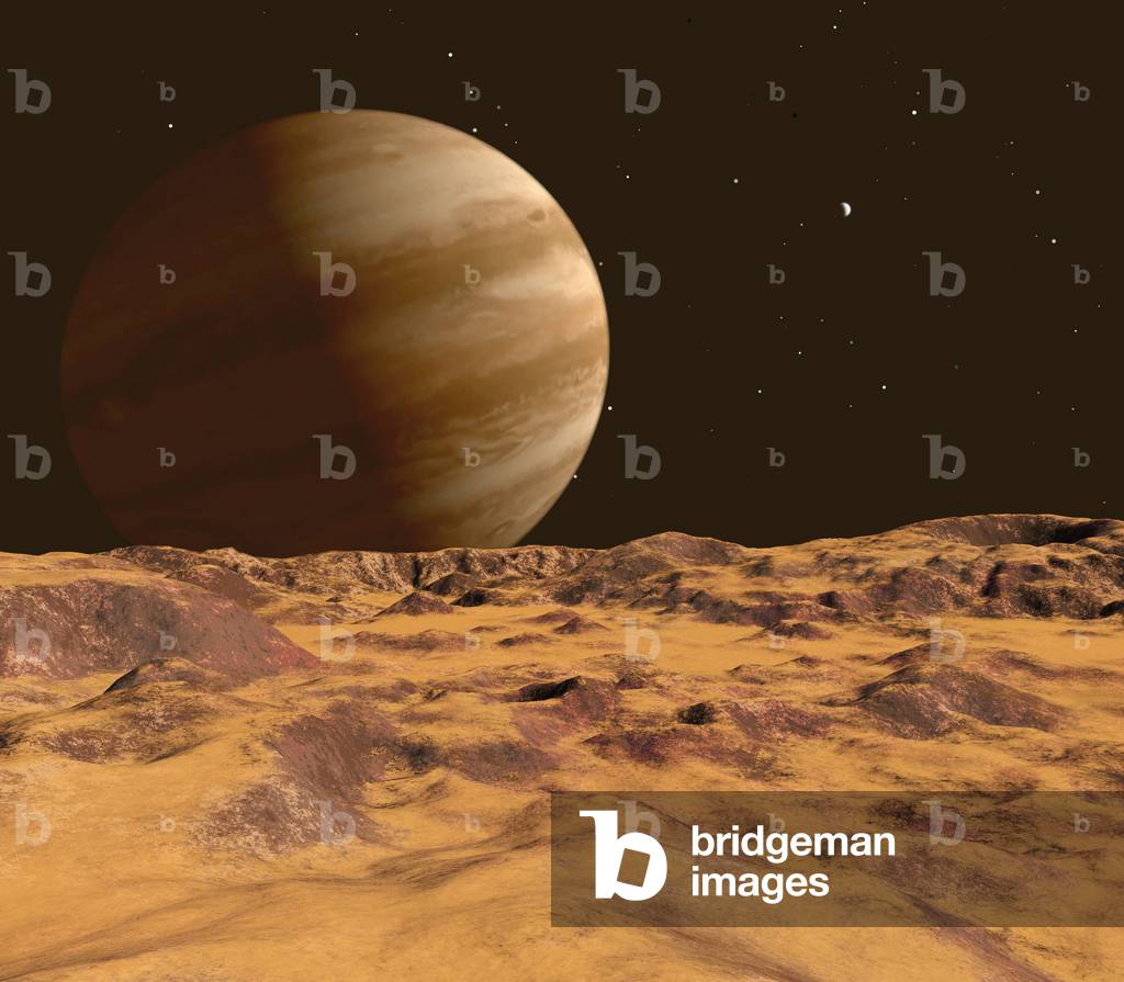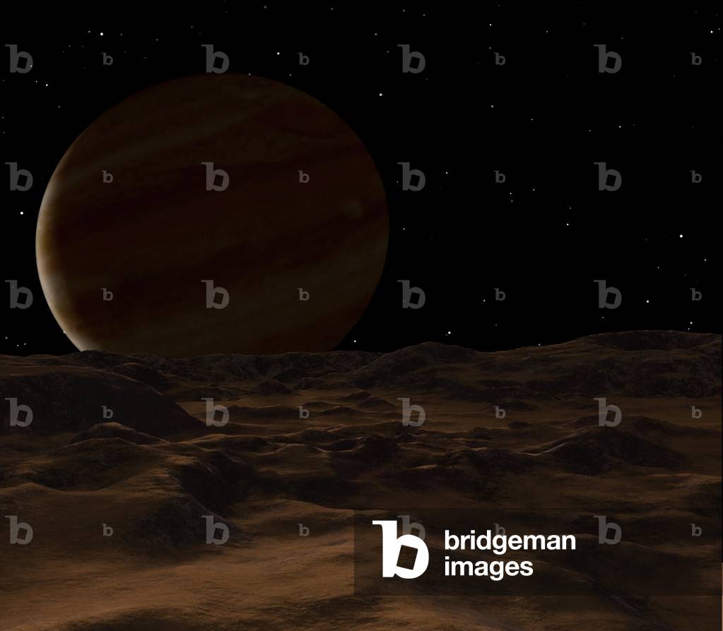 Size comparison: Earth, Moon and Galilean satellites - Jupiter's four largest satellites and Earth and the Moon compared - Jupiter's four largest satellites, called Galilean satellites, compared to Earth and Moon. At the top, from left to right, in order of their distance to the planet Jupiter, we find Io, Europe, Ganymede and Callisto. Ganymede is the largest satellite in the solar system. Jupiter's four largest satellites, also known as the “” Galilean”” satellites since they were first observed by the Italian astronomer Galileo over 400 years ago, are worlds in their own right. Top row, left to right, in order from their distances from Jupiter, are: Io, Europa, Ganymede, Callisto Io is the most volcanic world in the Solar System, resurfacing itself continually with extremely hot and massive eruptions that spew material over 200 miles into space. Europa is about the same size as Earth's Moon, however unlike the Moon which is made up mostly of dry silicate materials, Europa is believed to be composed primarily of water ice, and may even contain a vast ocean of liquid salt water beneath its crust. For this reason, Europa is now emerging as one of the most viable candidates for hosting extraterrestrial life. Ganymede and Callisto are each larger than the planet Mercury, while Ganymede is the largest of all satellites in the Solar System. Io, Europa, and Ganymede are locked in a gravitational resonance where for every orbit Ganymede completes, Europa completes two orbits and Io completes four