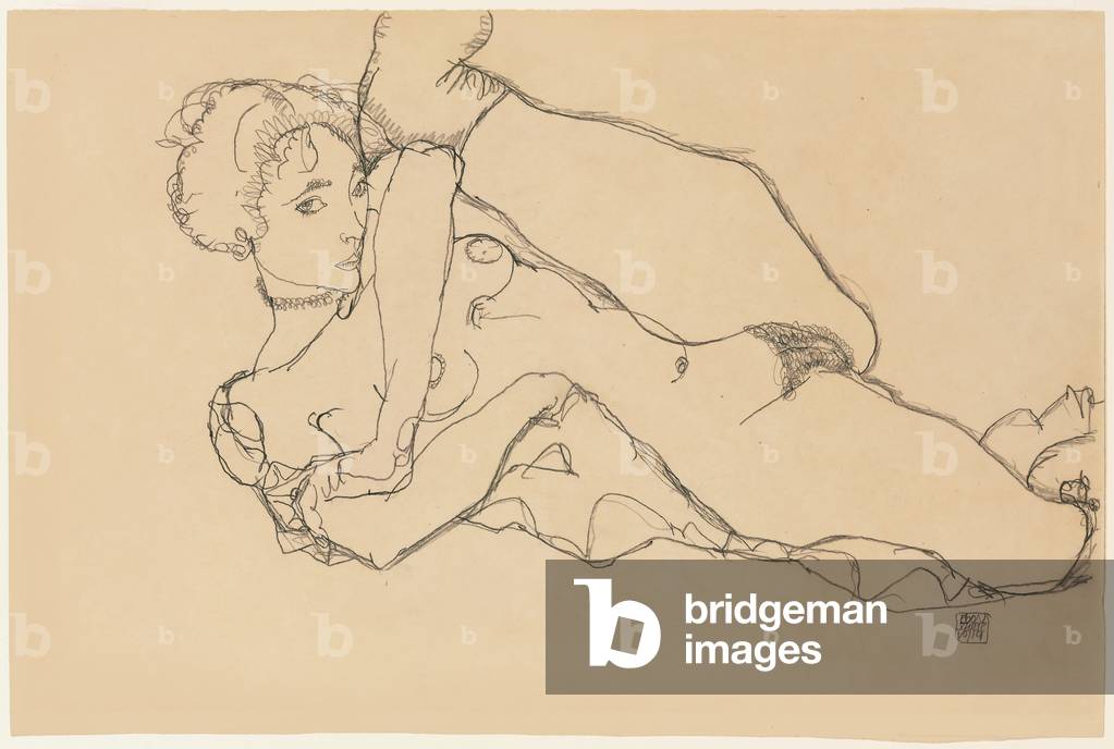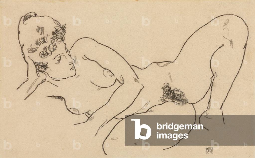 CH1768054 Reclining Nude; Liegender Akt. Egon Schiele (1890-1918). Black crayon and pencil on paper. Drawn in 1917. 29.3 x 46cm.