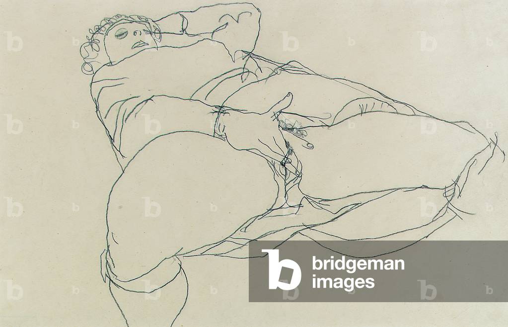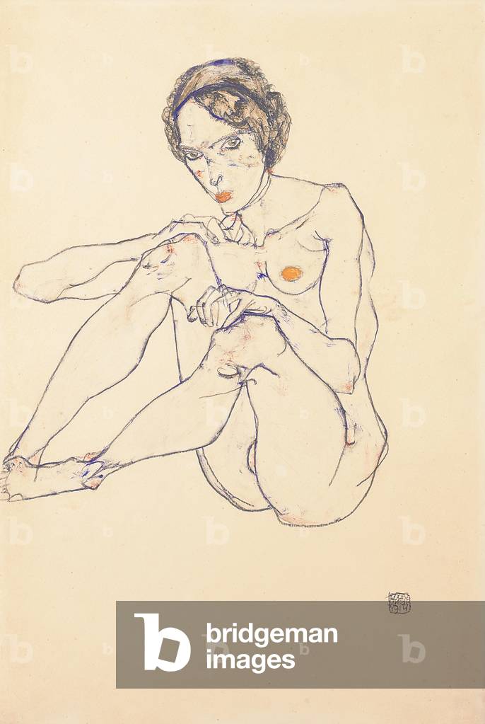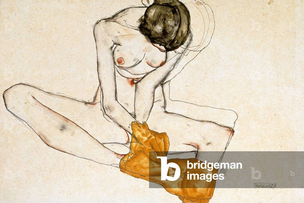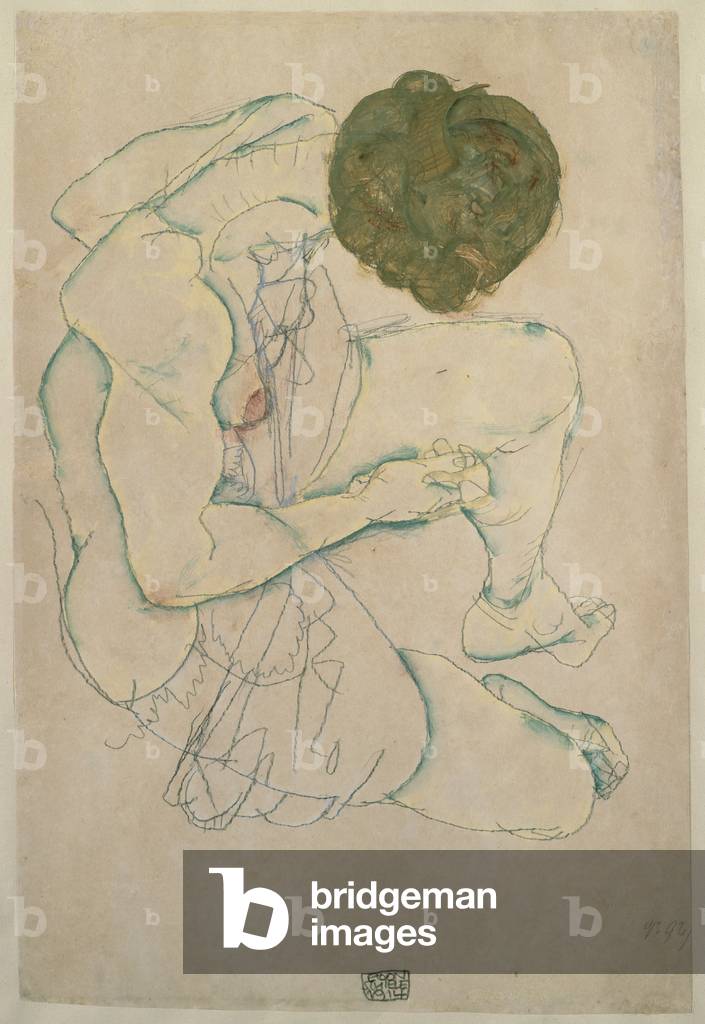 LRI4652014 Half naked female. Drawing by Egon Schiele (1890-1918), 1911 Pencil and watercolor on paper. Dim: 45,9x31,1cm. Vienna, Graphische Sammlung Albertina