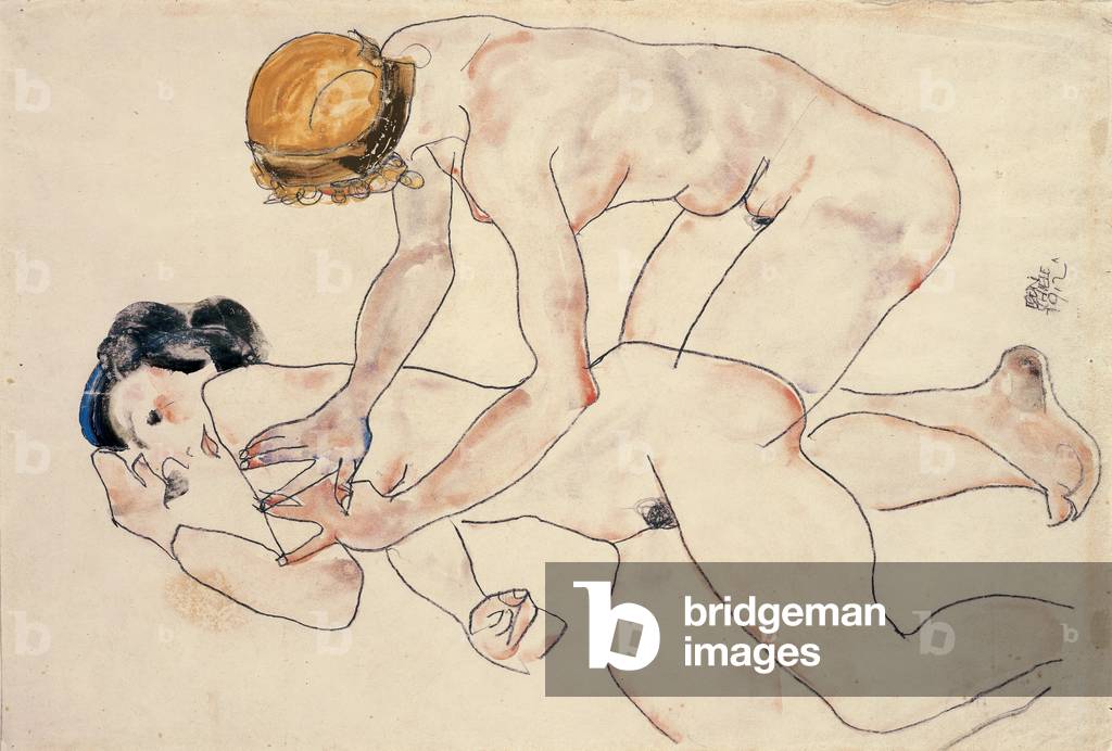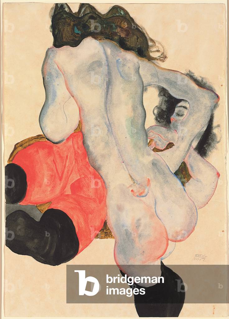 CH1767968 Woman with Red Pants and Standing Female Nude; Liegende Frau mit roter Hose und stehender weiblicher Akt. Egon Schiele (1890-1918). Gouache, watercolour and pencil on paper. Executed in 1912. 45.2 x 31.6cm.