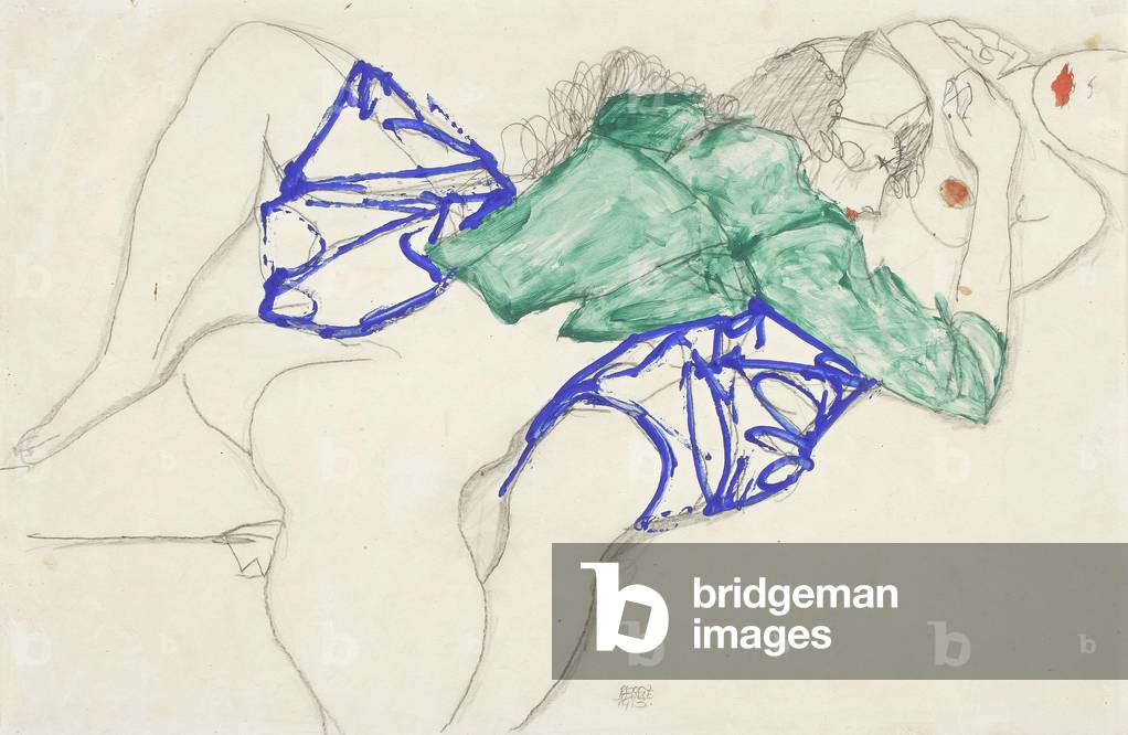 CH1767899 Reclining Nude with Black Stockings; Liegender Akt mit schwarzen Strumpfen. Egon Schiele (1890-1918). Watercolour, gouache and pencil on paper. Executed in 1911. 56.5 x 38.1cm.