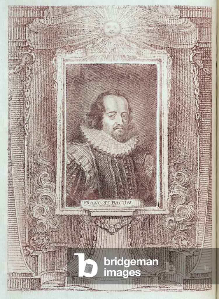 UIS5084729 Francis Bacon, English essayist and philosopher, early 17th century. Portrait made in 1763 of Sir Francis Bacon (1561-1626). Bacon is perhaps best known for stressing the importance of scientific experiment in interpreting nature, and for demanding factual evidence rather than rely on deductive logic. His writings had a profound influence on later scientific thought. Illustration from 'Histoire des philosophes modernes' (History of modern philosophers), by Alexandre Saverien (1720-1805), published in Paris in 1763. ©SSPL/Science Museum