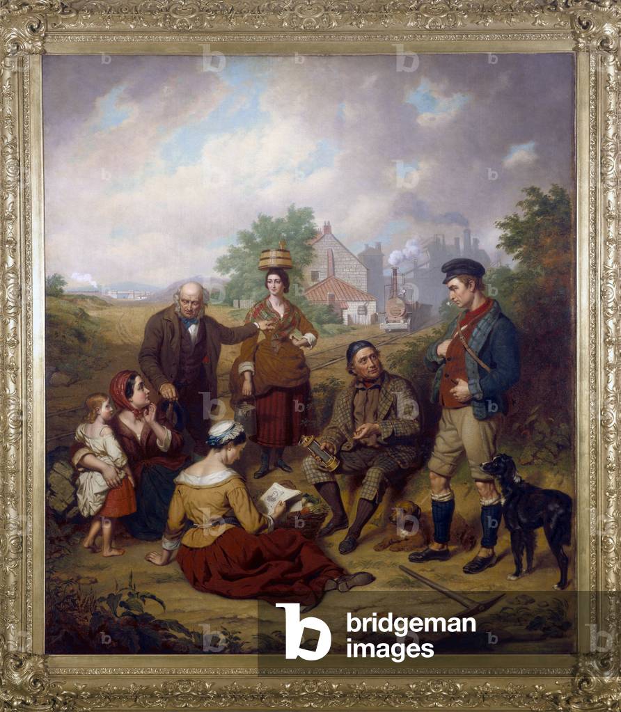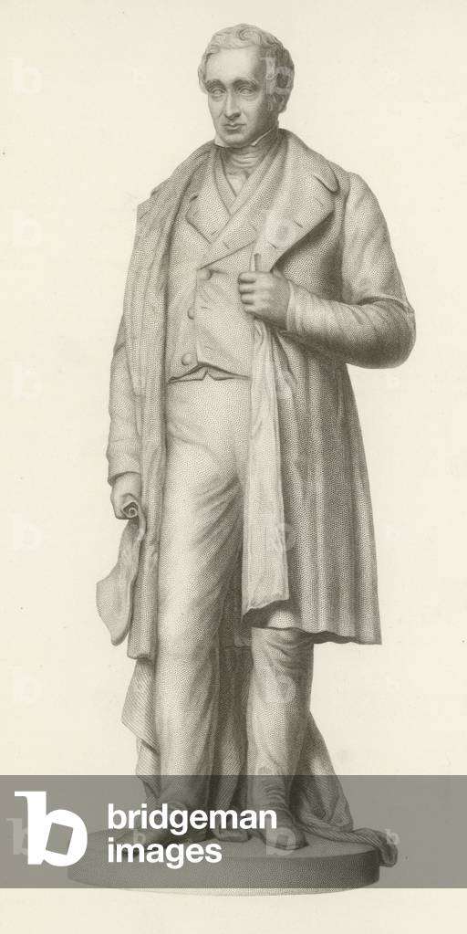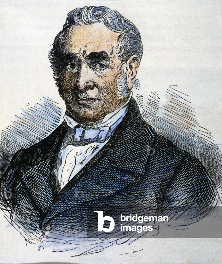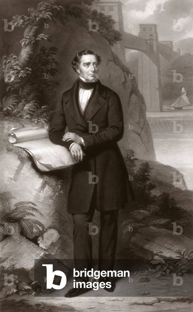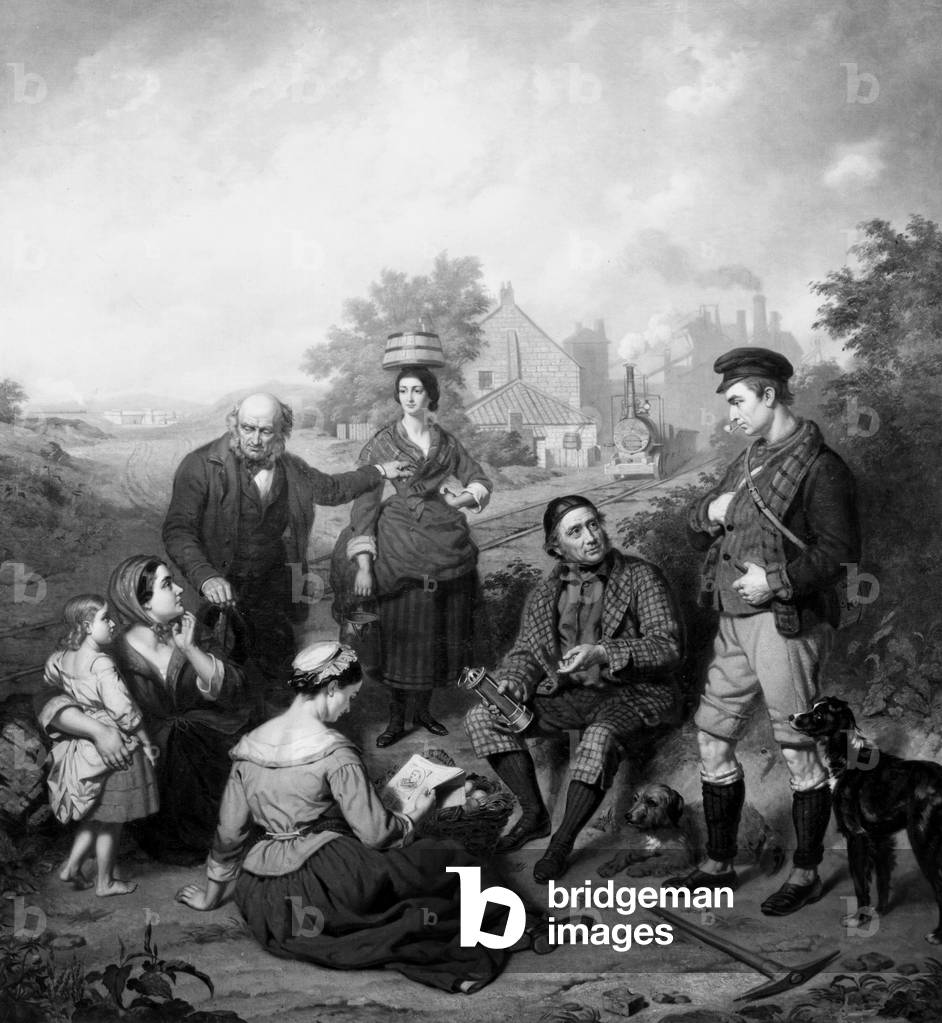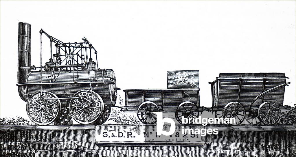 George Stephenson (1781-1848) English mechanical engineer and railway pioneer, born at Wylam, near Newcastle upon Tyne, Northumberland. Stephenson instructing the navvies constructing the Liverpool and Manchester Railway, England, which was opened in September 1830. From "The Triumphs of Steam" by Henry Frith (London, c1898). Engraving.