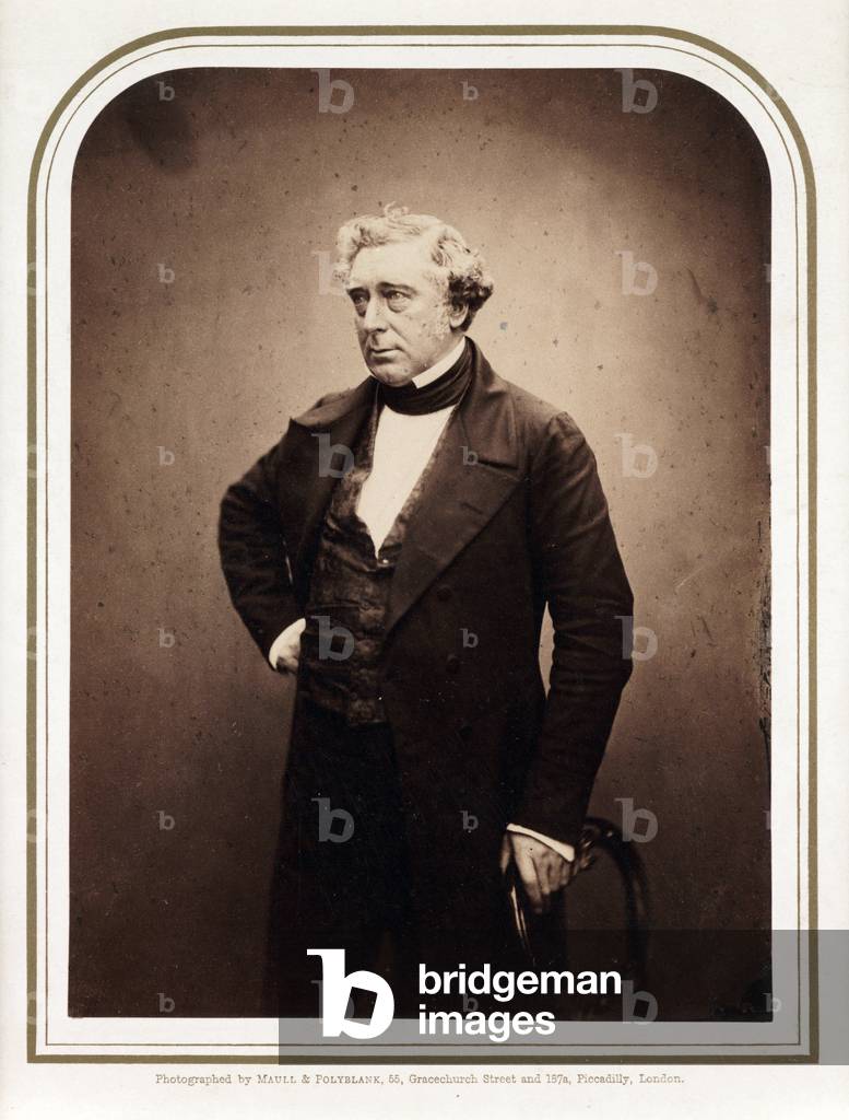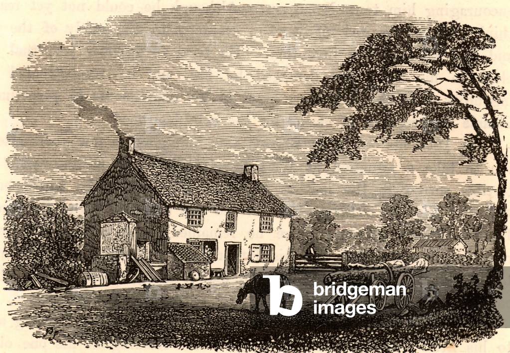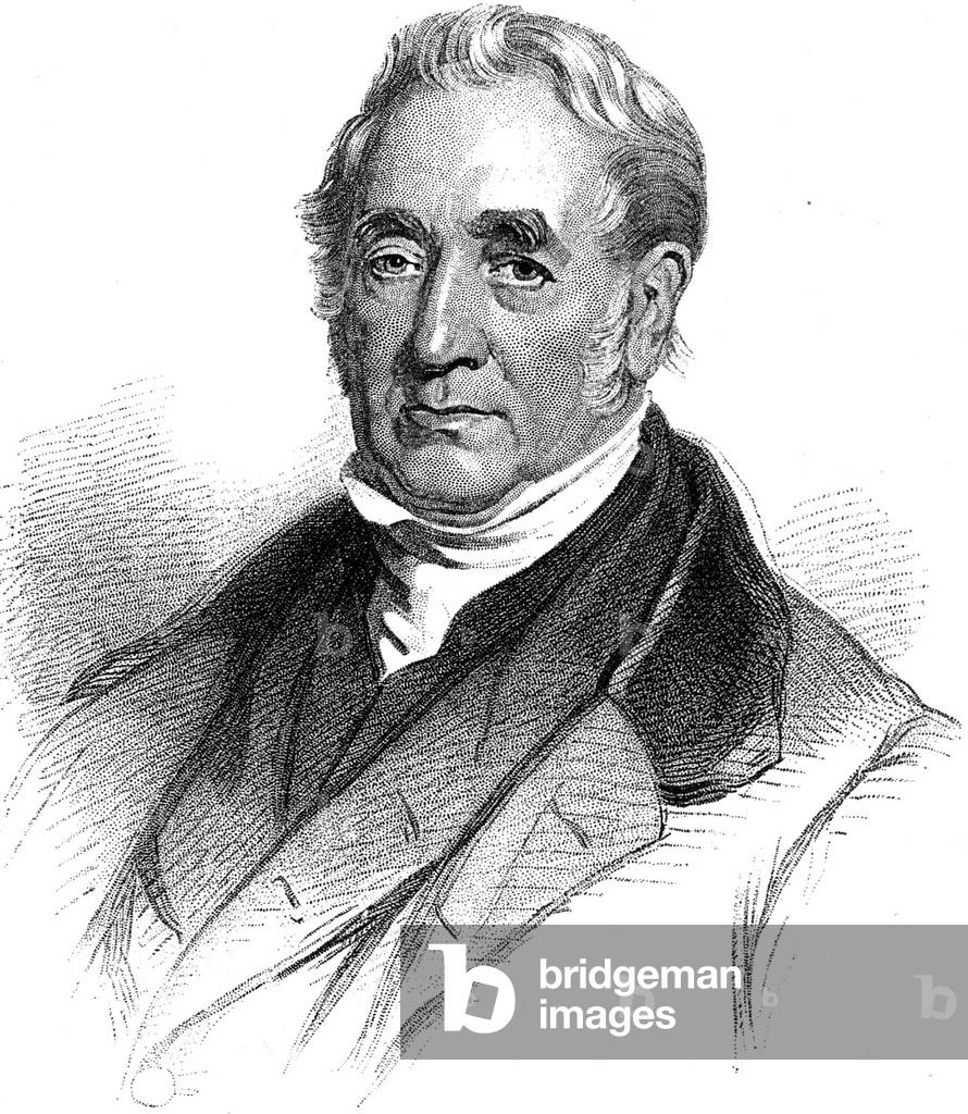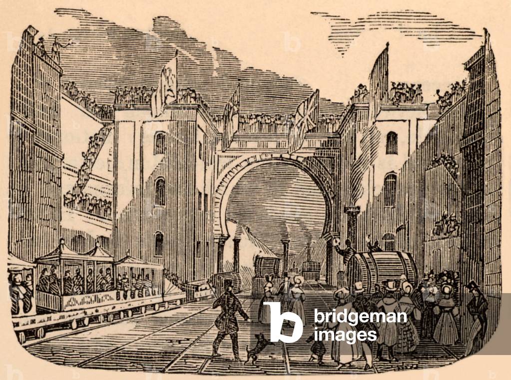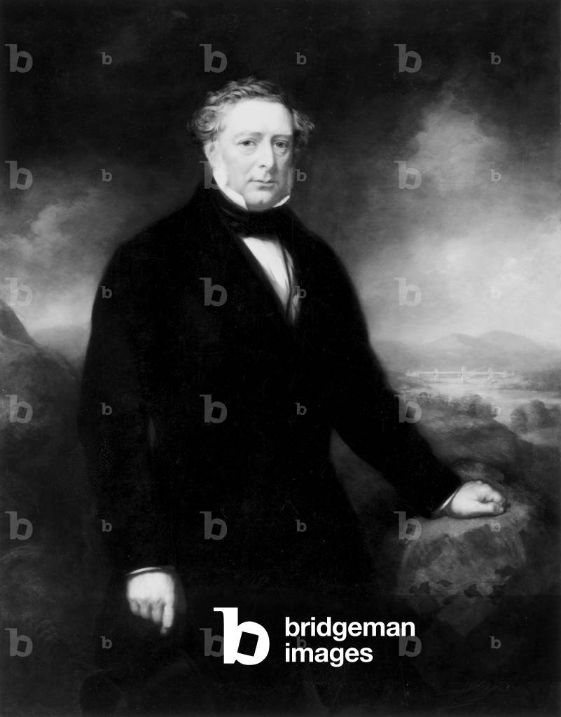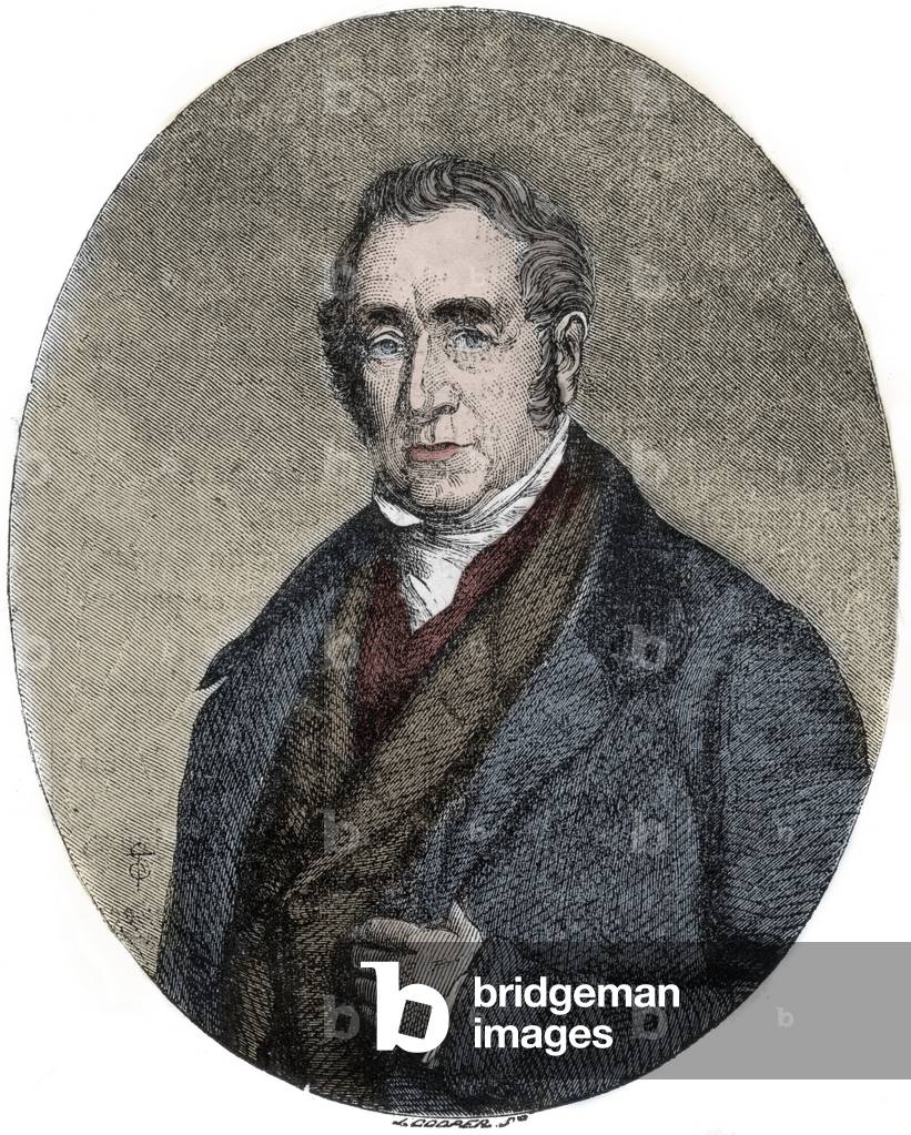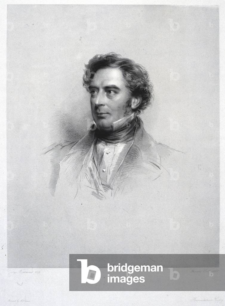 George Stephenson (1781-1848) English mechanical engineer and railway pioneer, born at Wylam, near Newcastle upon Tyne, Northumberland. Stephenson instructing the navvies constructing the Liverpool and Manchester Railway, England, which was opened in September 1830. From "The Triumphs of Steam" by Henry Frith (London, c1898). Engraving.