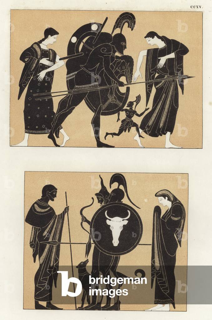 LLM957832 The corpse of Achilles. Illustration of Greek vase painting.