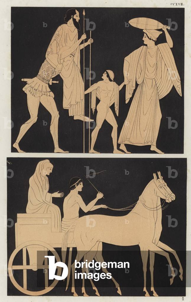 LLM957856 Flight of Aeneas. Illustration of Greek vase painting.