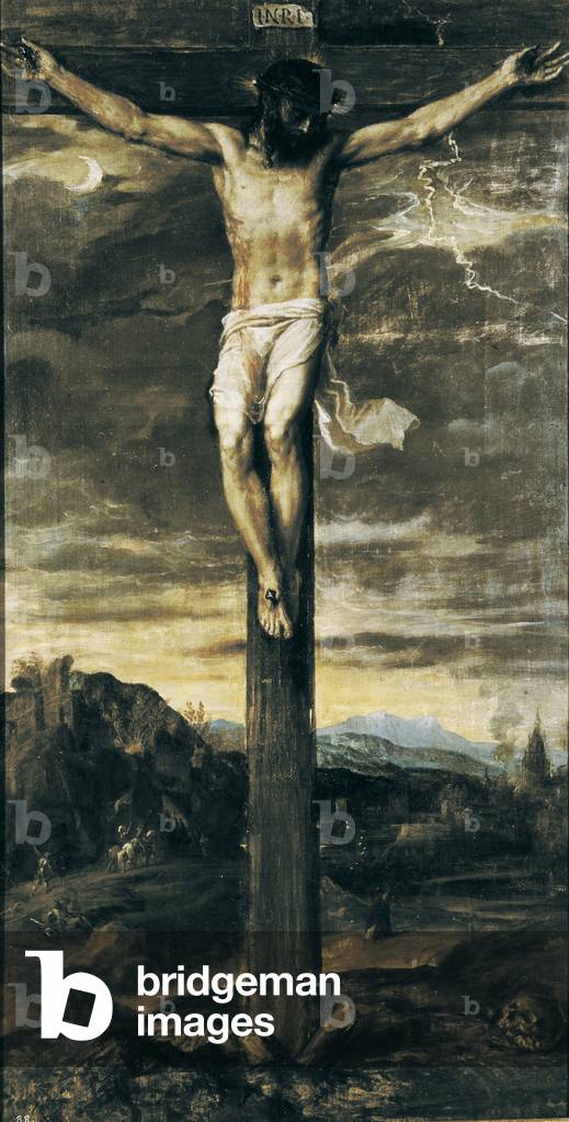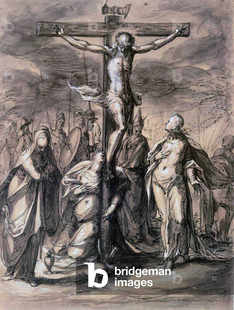 HIM5255582 Christ sur la Croix. Inscription ""INRI"" sur la croix. Dessin de Hermann Weyer (1596-v.1621), 17eme siecle. Musee des Beaux arts de Budapest, Hongrie.