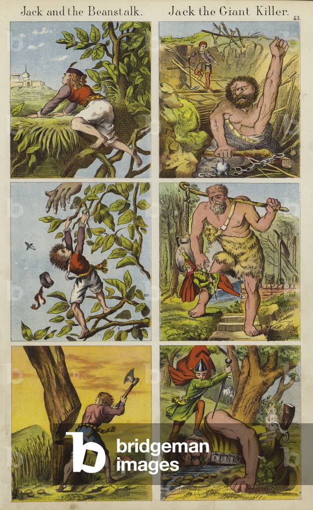 LLM6000943 Jack And The Beanstalk; Jack The Giant Killer. Illustration for The Prince of Nursery Playmates (Sampson Low, c 1885).