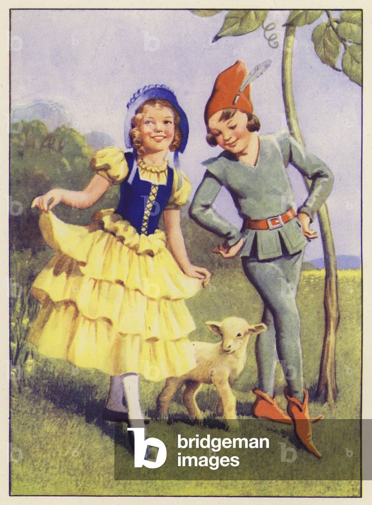 LLM8645164 Mary had a Little Lamb and Jack and the Beanstalk. Illustration for Dancing Days in Fairyland (Juvenile Productions, c 1950).