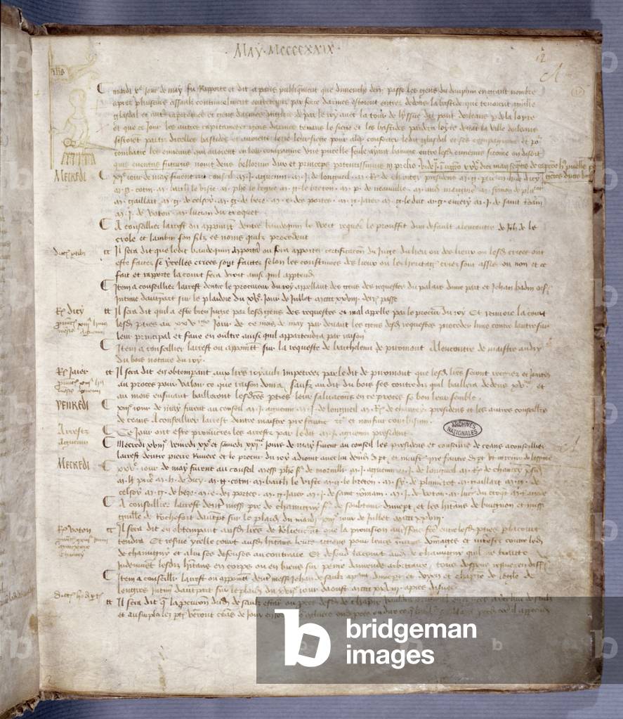 ARH199634 Registre du Conseil du Parlement de Paris; only portrait of Joan of Arc that we know to have been executed in her lifetime; see also 154932 and 164833;