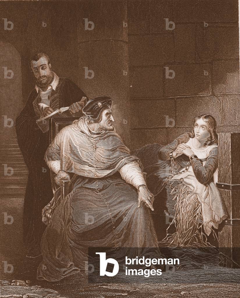 STC475426 Joan of Arc (c.1412-31) interrogated by Cardinal Beaufort in Rouen prison;