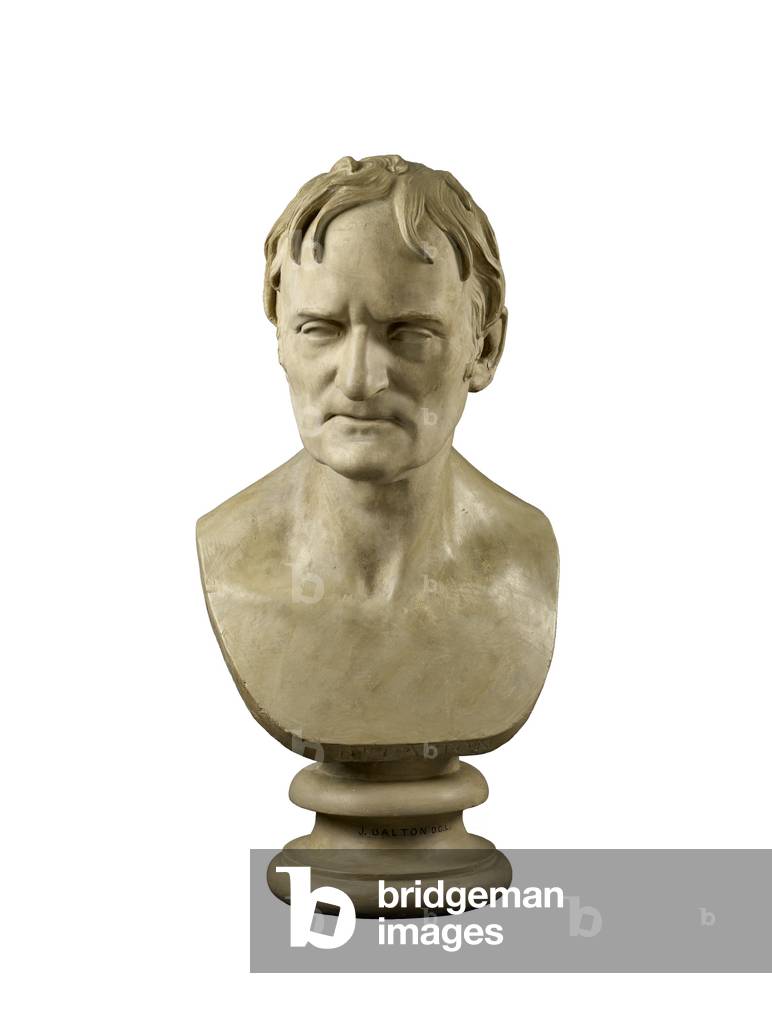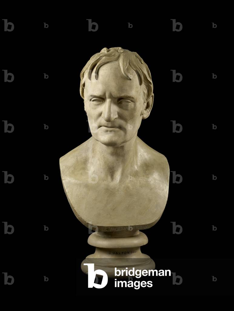 HIM5300022 Portrait de John Dalton, chimiste et physicien britannique - Bust of John Dalton DCL (1766-1844), 1834. Presumably a model for a marble though no marble has been traced. A different composition from the statue of Dalton (cf), but possibly produced in connection with this commission. Dimensions: height x width x depth: 61.2 x 33 x 32 cm
